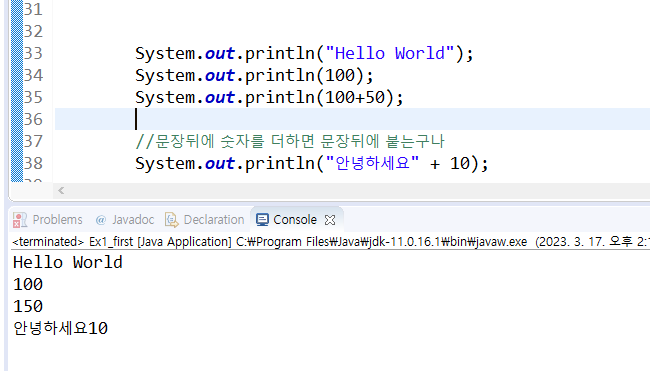 System.out.println(5+10+":"+(5+10));//문장뒤에 오는 숫자를 자세히 본다.