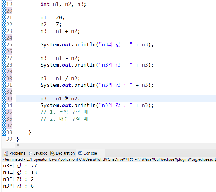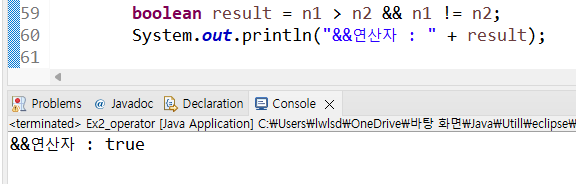 System.out.println("=연산자 : n1 : " + n1 + " n2 : " + n2);