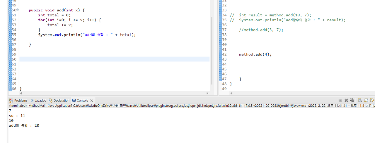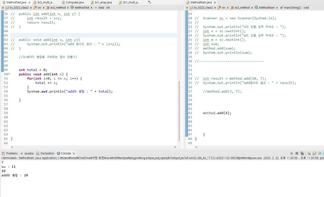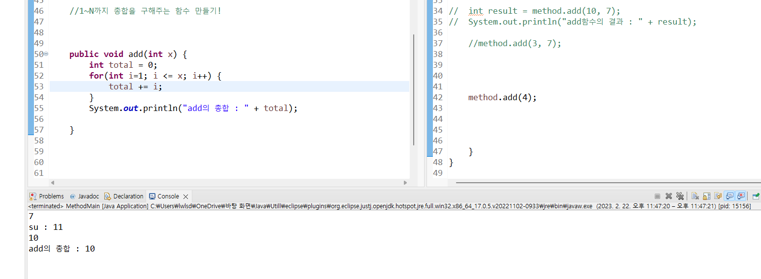 JAVA - Method 문 총합을 구하는 함수를 만들자